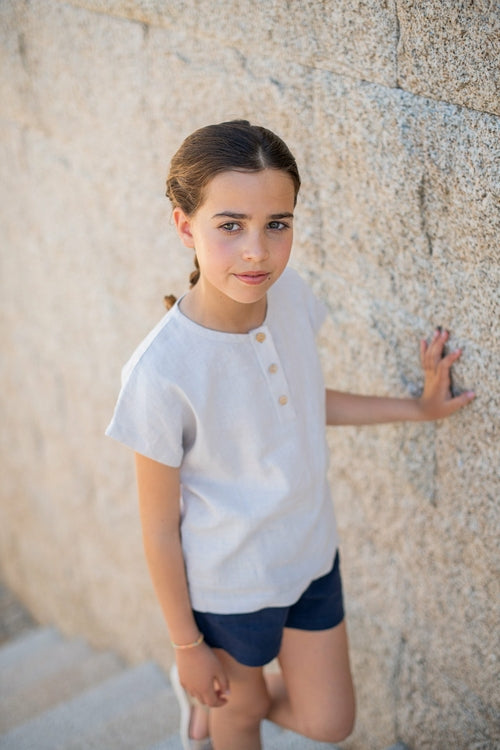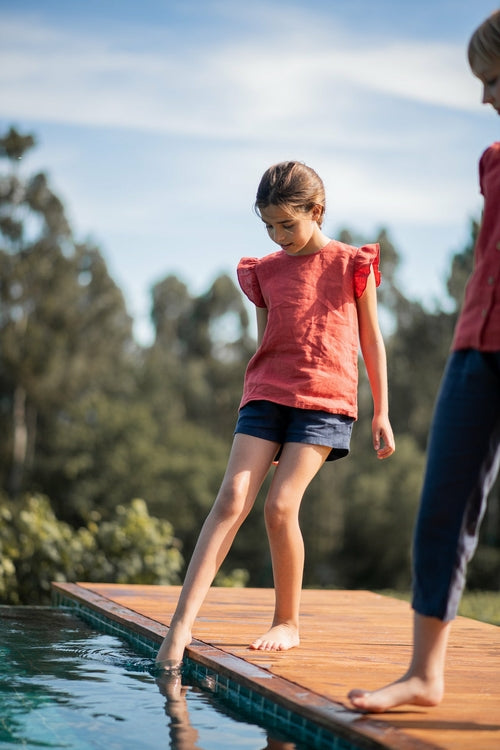 Elasticised waist decorated with frills. A lovely piece for all occasions.